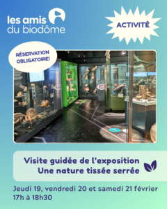 Profitez d’une visite guidĂ©e privilĂ©giĂ©e de l’exposition une nature tissĂ©e serrĂ©e, inaugurĂ©e au BiodĂŽme en novembre 2024! Cette activitĂ© exclusive rĂ©servĂ©e aux membres vous permettra de dĂ©couvrir cette exposition exceptionnelle dans une ambiance intime et enrichissante, accompagnĂ©s de nos Ă©ducateurs scientifiques.Â